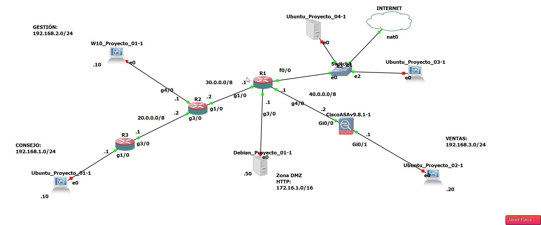 Para acabar el módulo de seguridad y alta disponibilidad, realizamos un proyecto final en el que se miden todas las destrezas aprendidas durante el curso. El escenario de mi proyecto fue escogido a sorteo, como el protocolo VPN escogido. En mi caso me tocó realizar el protocolo IPSec puro en el resultado de aprendizaje 03 de redes VPN. Este proyecto sirve para comprobar el nivel de los conocimientos aprendidos y me gustó mucho realizarlo ya que me puso a prueba y obteniendo muy buenos resultados, como los proyectos de SRI y de PAR de 1º de ASIR. Dicho proyecto fue calificado con una nota de 9.